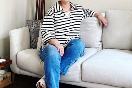 Pour ma part, je porte aussi du neutre, blanc, noir, beaucoup de bleu marine depuis que j’assume mes cheveux blancs.