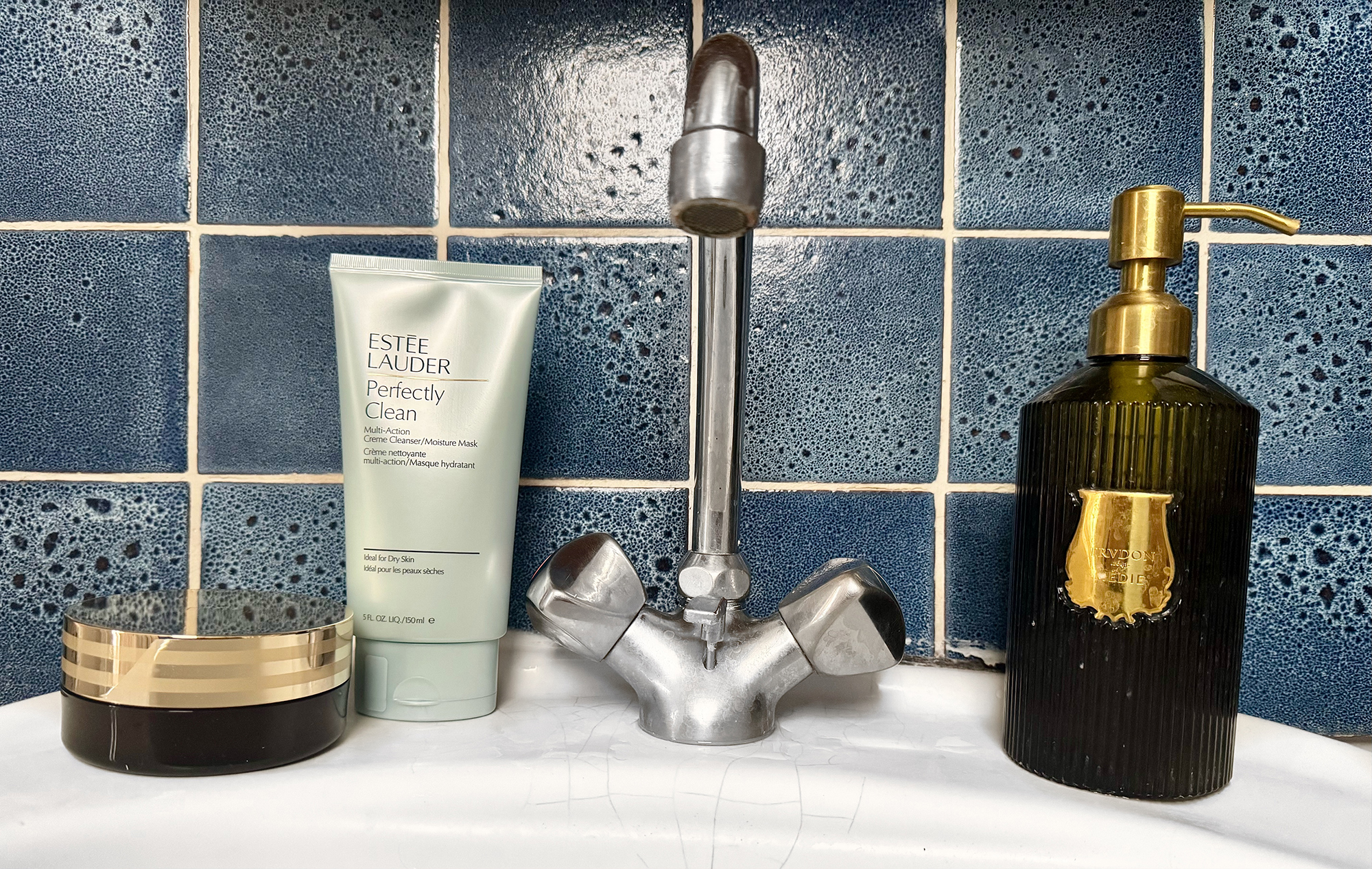 Si je veux faire un second nettoyage (ou un nettoyage seul un jour où je ne suis pas maquillée), j’ai le Perfectly Clean Cream Cleanser d’Estée Lauder aussi. Je l’aime beaucoup, il est bien riche et onctueux pour la saison ; et il fait aussi masque hydratant si on a envie, c’est très pratique.