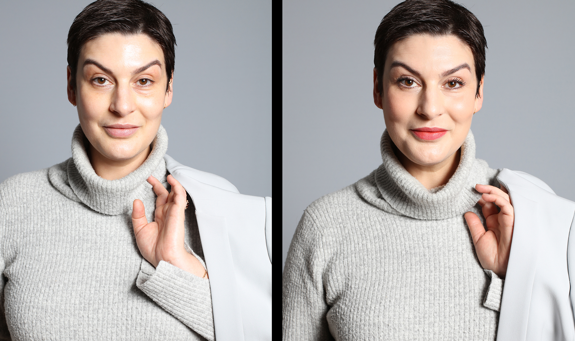 Les astuces de pro, j’adore ! C’est souvent le petit plus tout simple, qui ne prend pas 3 heures et qui change tout. En tous cas le résultat est bluffant : avec peu de produits, cette couvrance et ce teint…. sublimes !