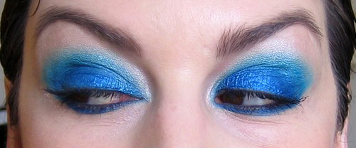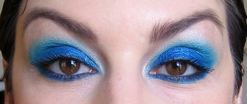 Gigimagique: je trouve ton maquillage svraiment superbe, et ton oeil gauche tout -à fait réussi !! Tu as utilisé quelles couleurs ? On dirait du bleu glacier et du bleu franc…