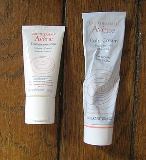 Cold Cream, Avène : sur les zones merdiques matin et soir (en couche épaisse si j’ai du temps pour que ça pénètre avant de me retrouver collée à mon oreiller ou de me maquiller – ah ben oui je suis obligée de me maquiller, sinon les gens vomissent sur mon passage).