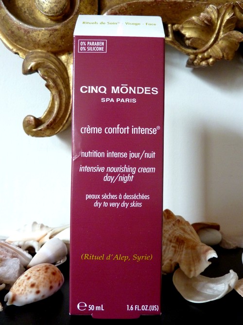La Crème Confort Intense® est une crème visage qui peut servir aussi bien le matin que le soir et qui est destinée aux peaux sèches. Si on a vraiment la peau ultra desséchée, on peut même l’utiliser en masque. Elle aussi est très parfumée (elle sent notamment beaucoup la myrrhe) ; elle nourrit bien la peau et la laisse confortable.