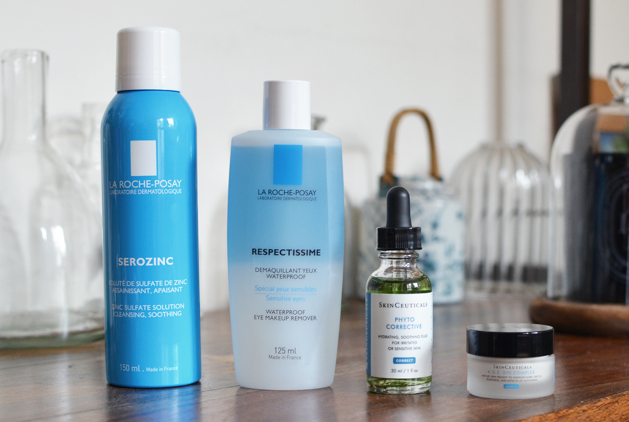 – Comme malheureusement je suis allergique au retinol, pour les rides d’expression de mon contour d’œil on ne peut pas faire grand-chose (le retinol est à ce jour le seul ingrédient vraiment efficace contre le vieillissement), à part choisir le Age Eye Complex de Skinceuticals (que j’ai beaucoup utilisé déjà, et que j’ai donc repris).