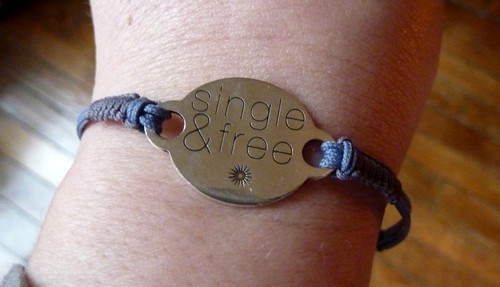 Non, ce qui serait intéressant ce serait des bracelets du genre « juste married & free » ou « single & armed » et un spécial pour toi Hèlène : « single & married & free ».