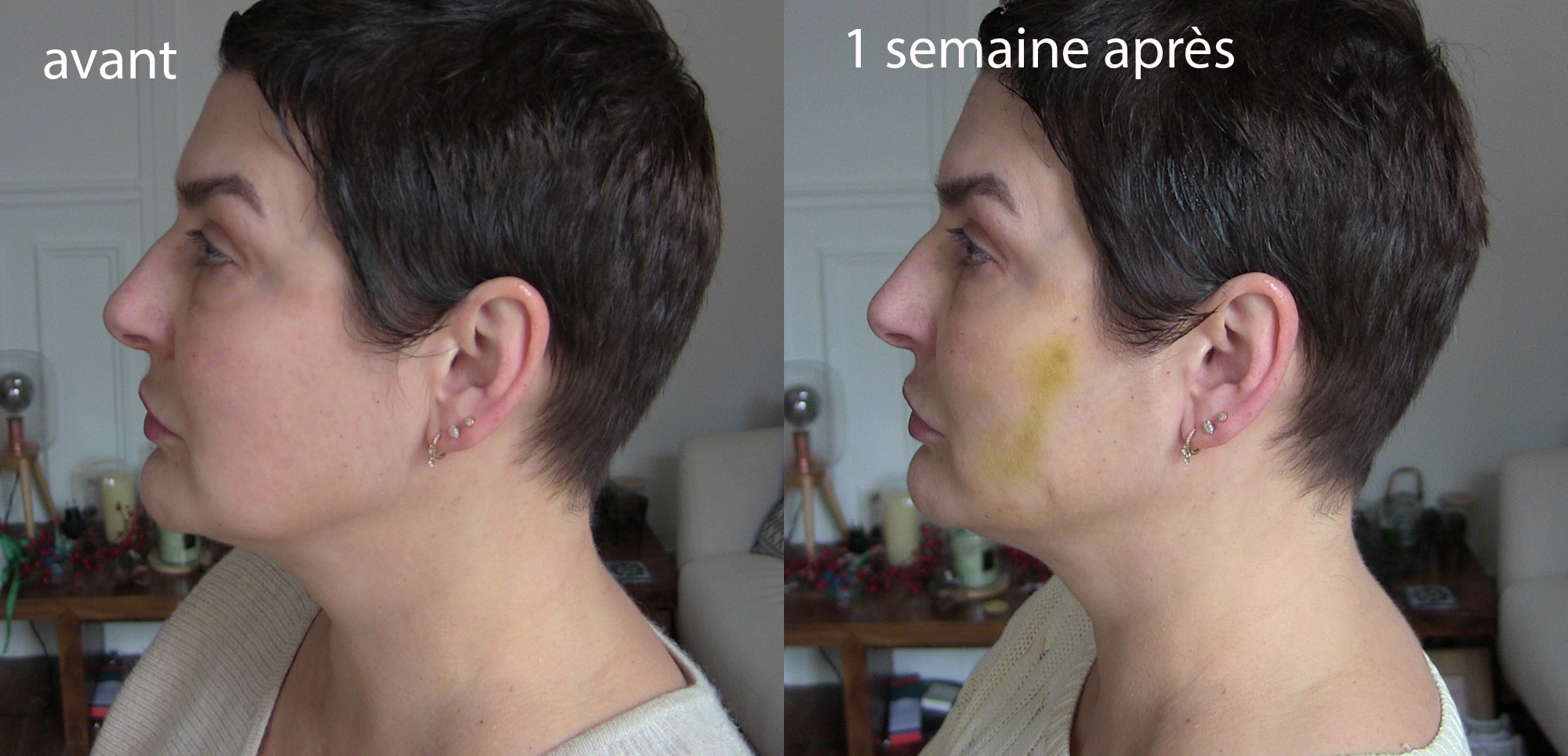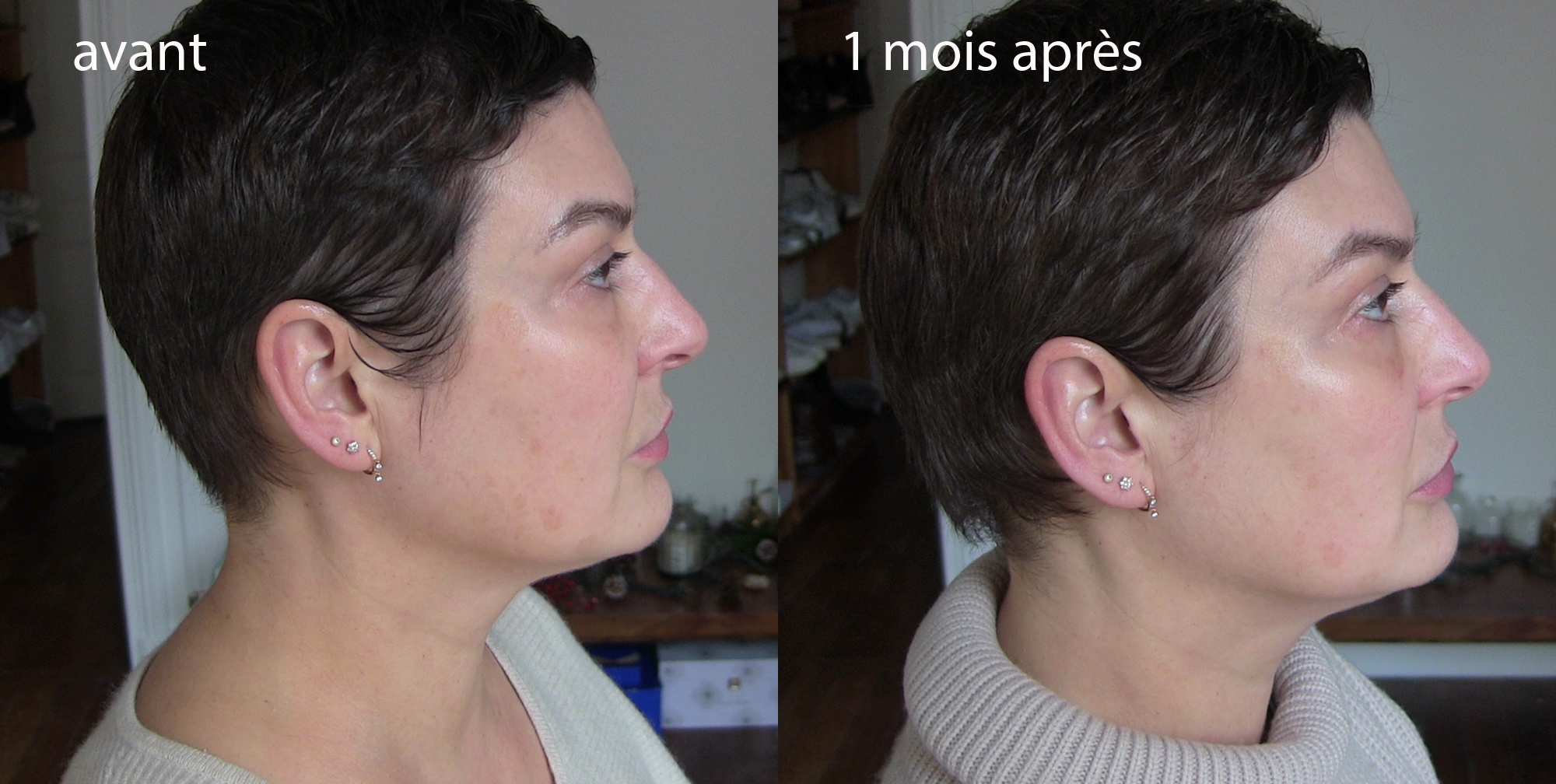 Céline Simple : mon ressenti a changé depuis cette vidéo, si tu me suis sur Instagram tu auras vu mes stories toutes récentes : il y a dans ces fils précis (que peu de médecin en France connaissent encore) un booster de collagène ; 2 mois et demi après la pose, ma peau est un peu plus ferme et ma ligne de mâchoire mieux définie qu’un mois après la pose ; cet « inducteur tissulaire », comme l’appelle Dr Botox, a l’air de fonctionner.