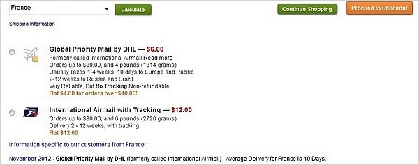 Et vu que le suivi hors territoire américain est inexistant, je choisirais peut-être la livraison sans suivi pour ma prochaine commande.