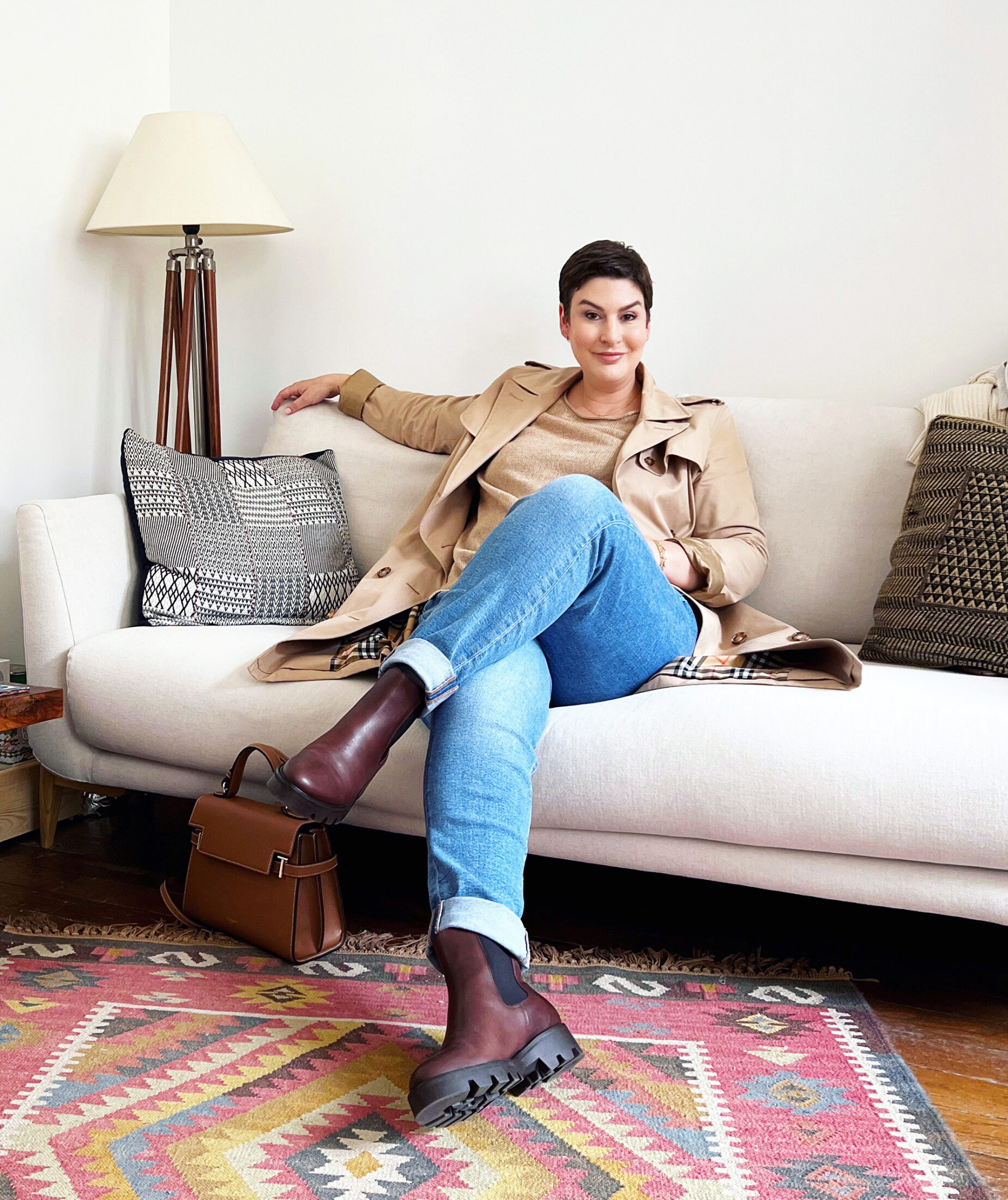 Ensuite ça a été des boots dans le style de tes marrons, et pareil, ça va avec tout, ça rehausse, on ne prend pas le froid et l’humidité. Après, évidemment, en cas d’alerte pluie je mets carrément des bottes en caoutchouc, c’est pas fait pour sauter dans les flaques 🤣.