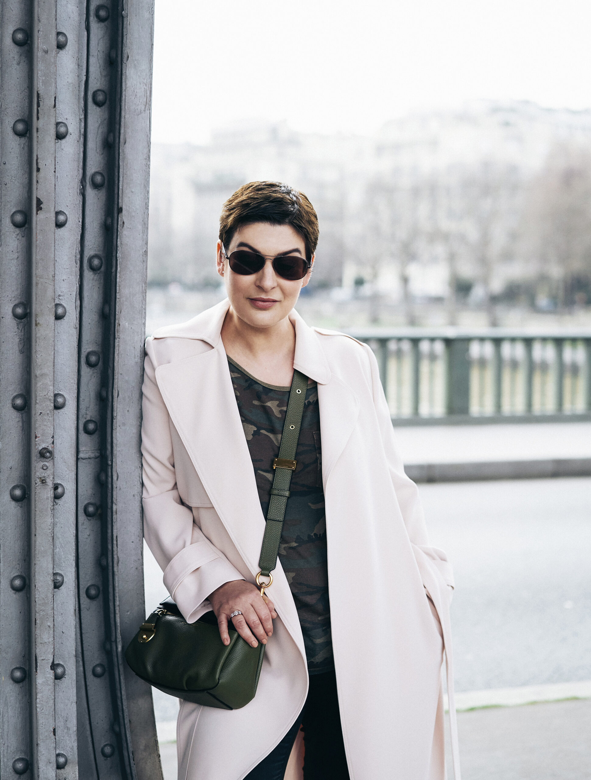 Moi non plus je n’ai jamais eu de trench. C’est un vêtement qui ne me parle pas. Mais quand je le vois porté sur toi je le trouve très joli. Sans doute parce qu’il n’est pas beige et qu’il est long. Ça te donne beaucoup d’allure.