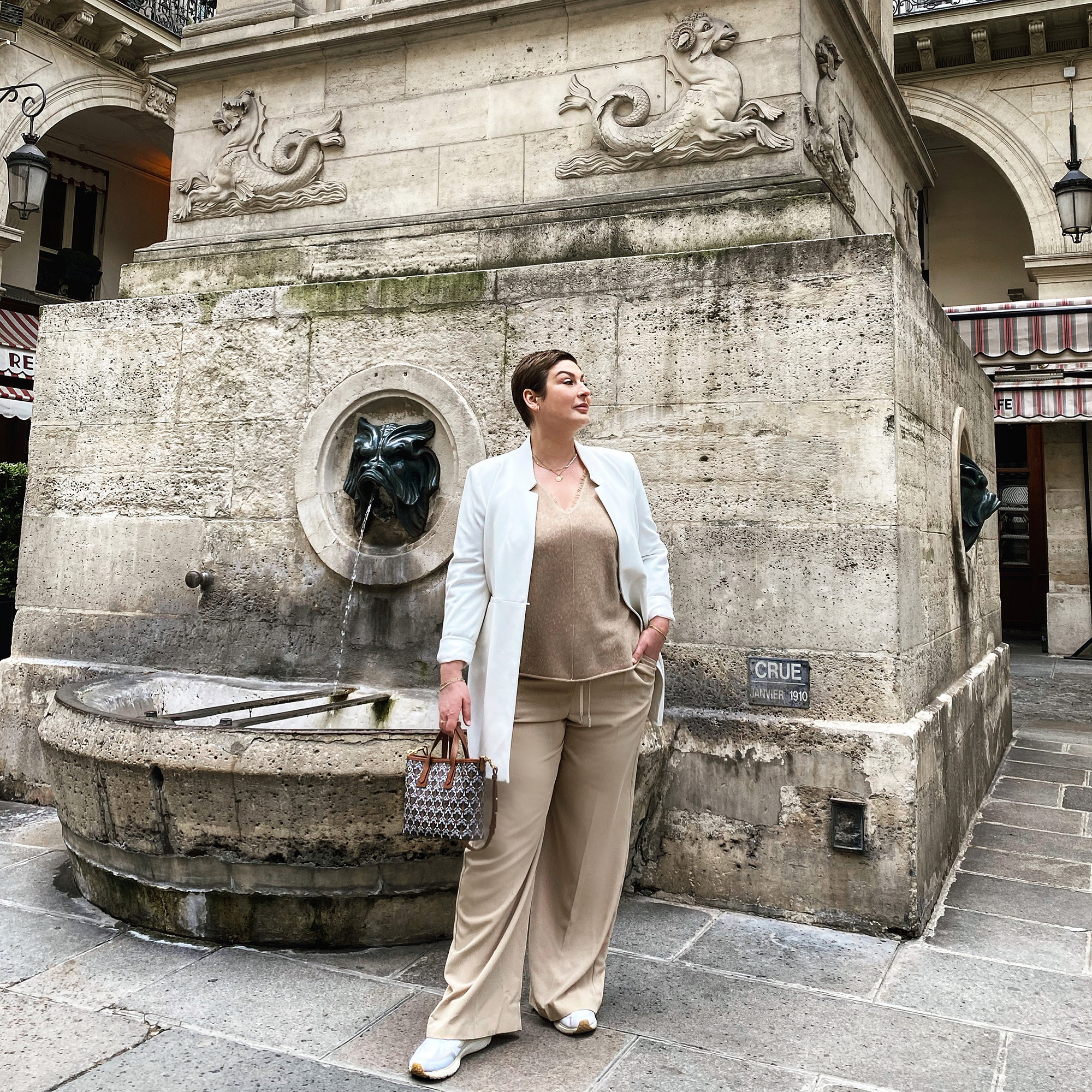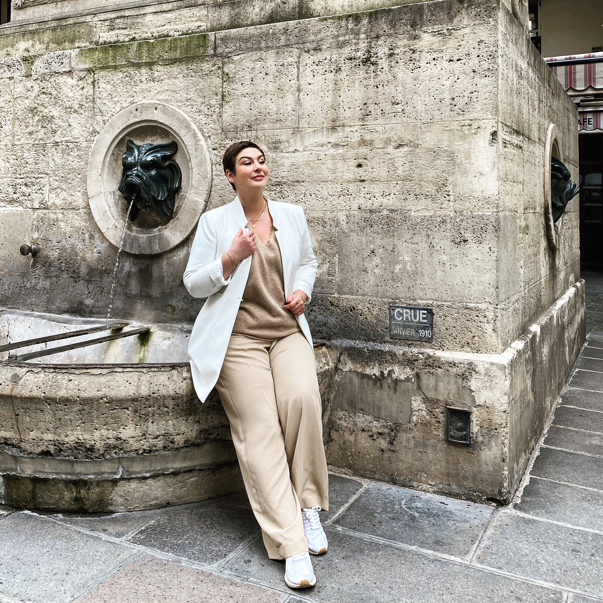 Au passage, j’aime beaucoup la veste que tu portes sur la photo, j’adore le combo blanc et beige, je trouve ça super chic !