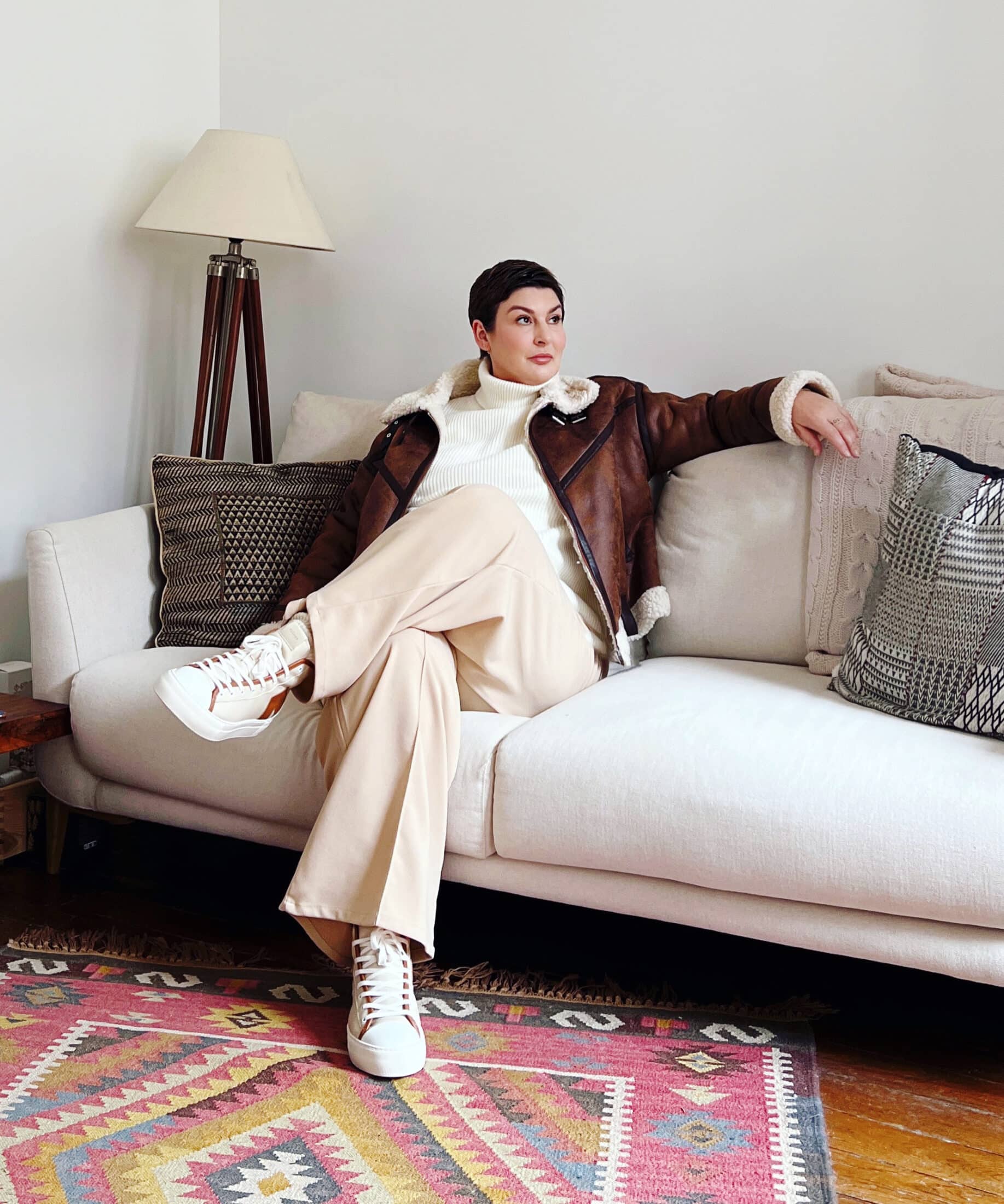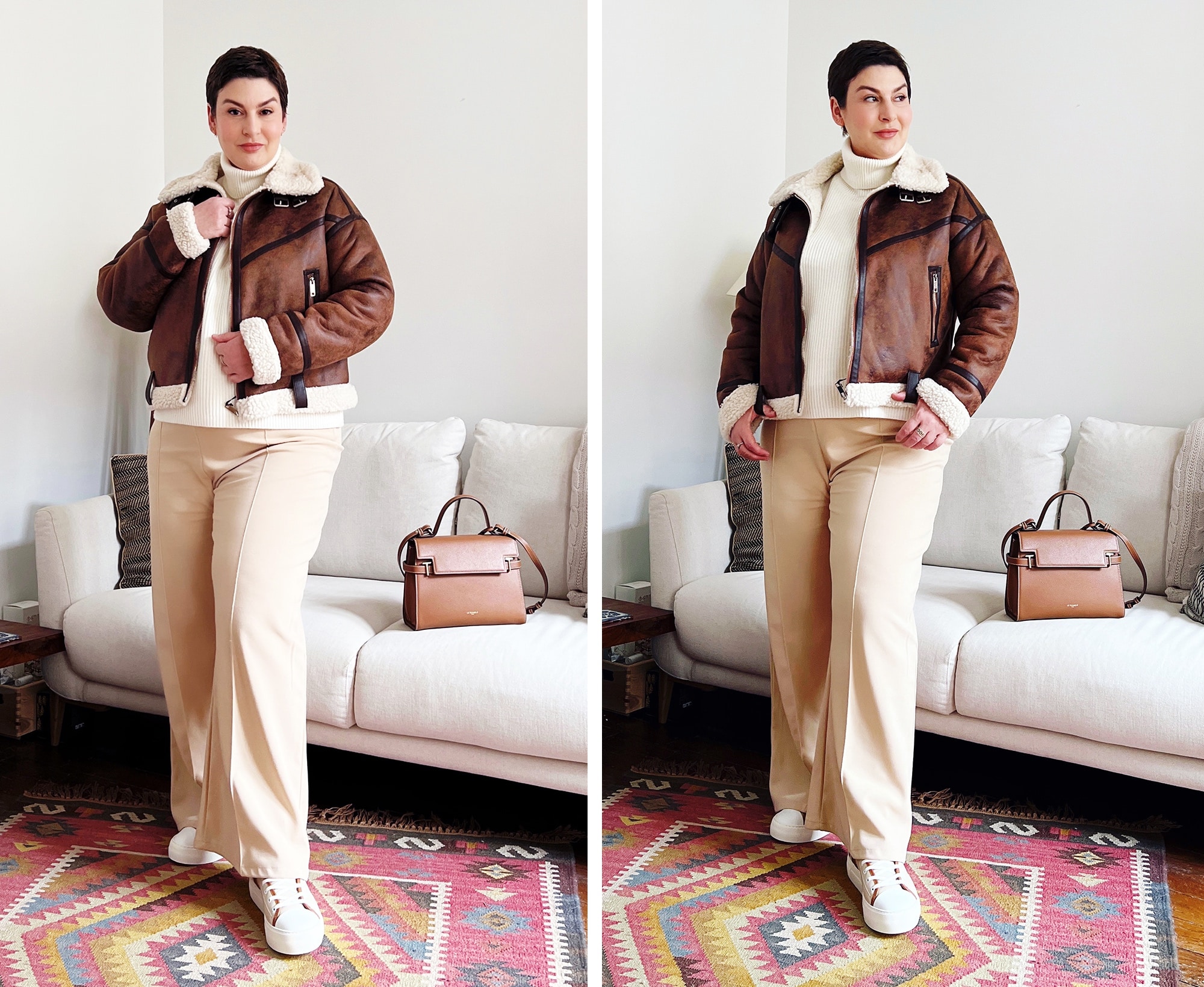 J’ai essayé tous ceux d’Asos, aucun ne me va. Et je n’allais pas non plus acheter une veste Schott en vrai mouton qui coûte une fortune, et qu’on ne peut pas porter à Paris parce qu’il ne fait pas assez froid.