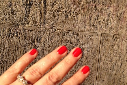 je porte des ongles courts comme elle …et son rouge candy… manucure de fête (enfin je ne sais pas si on ne dit pas ça que pour les voitures le rouge « candy » ^ ^ ; une sous couche rouge pailletté et plein de couches de vernis par dessus)