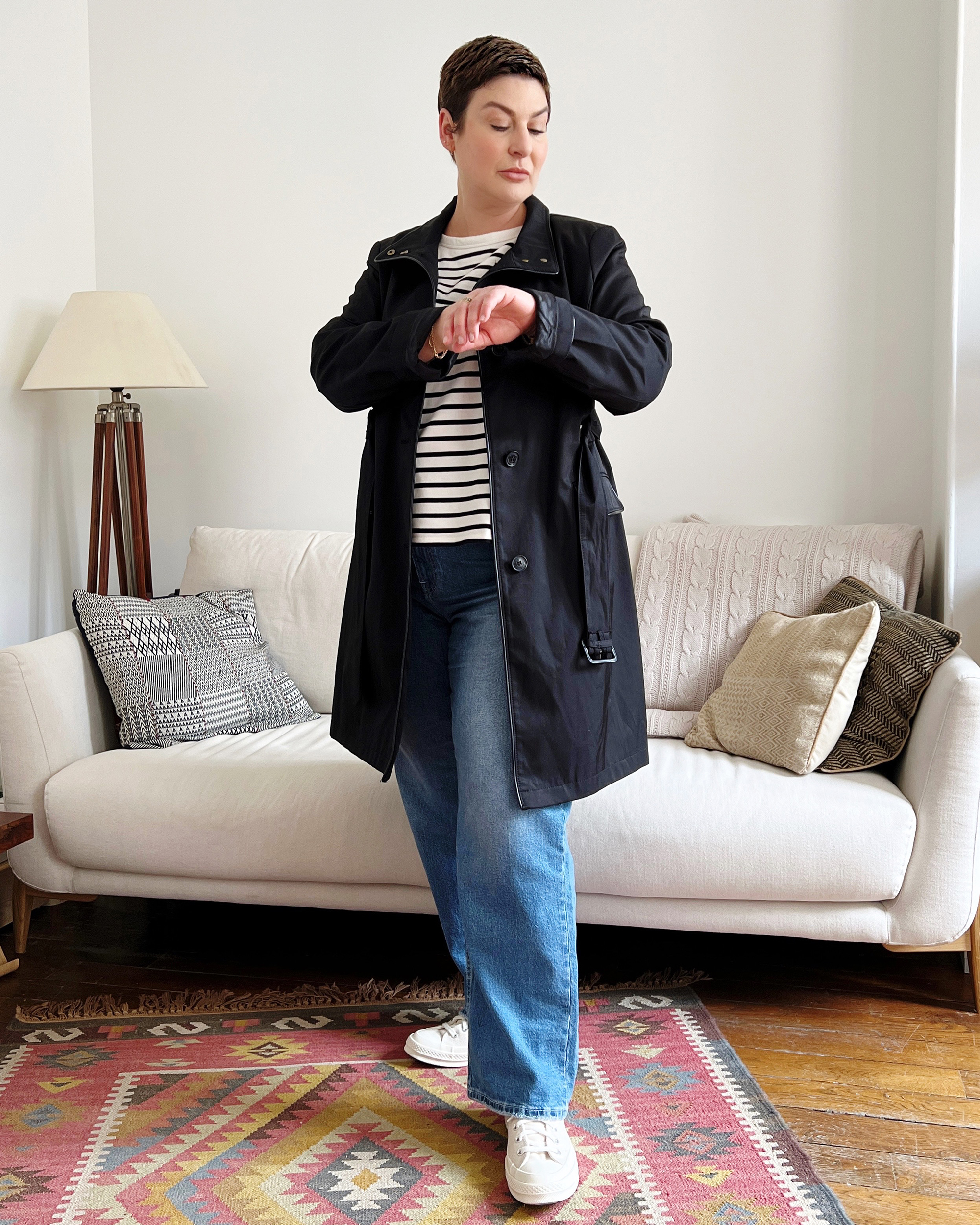 J’en profite pour signaler que si on veut investir dans un beau trench, ceux de Ralph Lauren sont géniaux : mille fois moins cher que Burberry, et taillent beaucoup mieux – je suis ébouinée dans mon Burberry en taille 46 alors que je suis à l’aise dans le XL de Ralph Lauren.