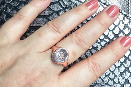 Ah, super, on voit enfin la bague Gas-Panzavolta sur ton doigt, et elle est superbe ! Moi aussi j’aime bien avec celle à deux francs six sous à côté.