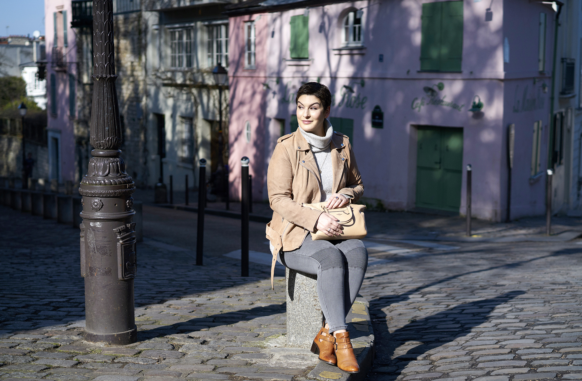 Tout cela est bien mis en valeur par les belles couleurs de Montmartre au soleil. Je note d’ailleurs que tu as changé de « photographe officiel(le) » pour cette séance et que le résultat est très réussi.