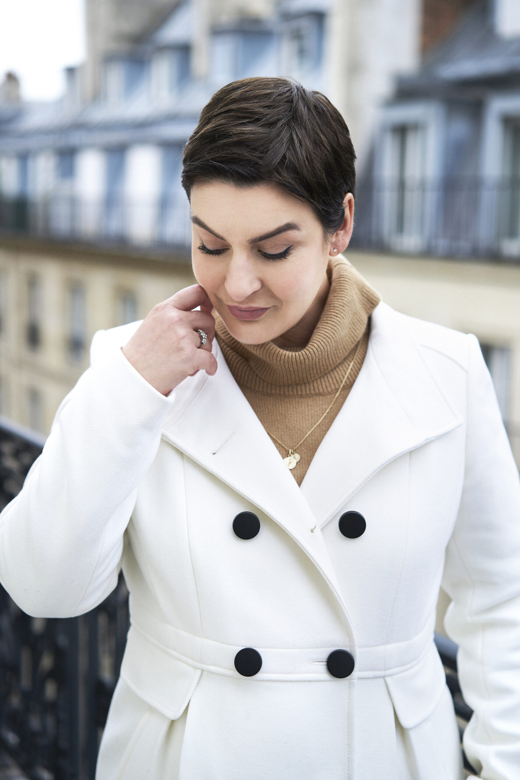 Ce manteau blanc est simplement magnifique et tu le portes à ravir.
